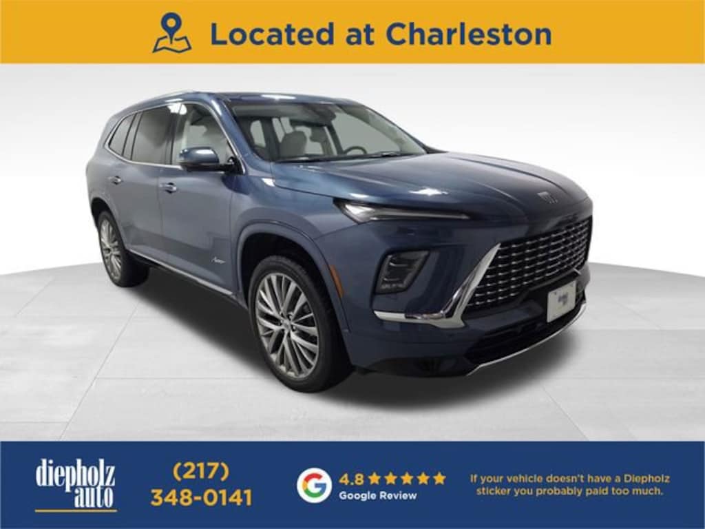 Call 217-348-0141 to check availability today. ocean blue metallic 2026 Buick Enclave Avenir AWD 8-Speed Automatic 2.5L DOHC CLEAN AUTOCHECK REPORT, ONE OWNER.